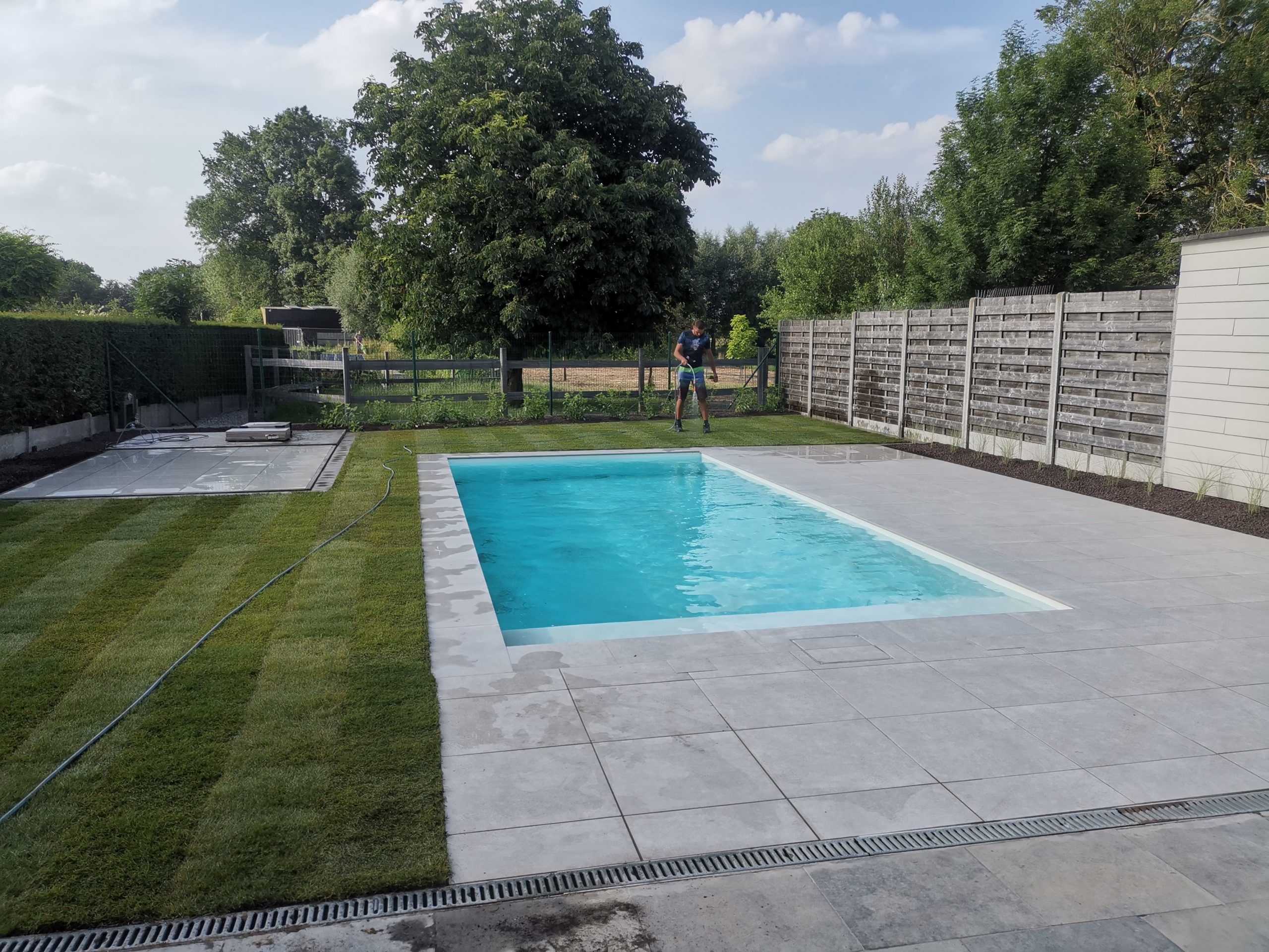 Eindelijk kunnen we genieten van ons zalig nieuw zwembad in de tuin. De plaatsing gebeurde vakkundig en alles werd netjes achter gelaten.